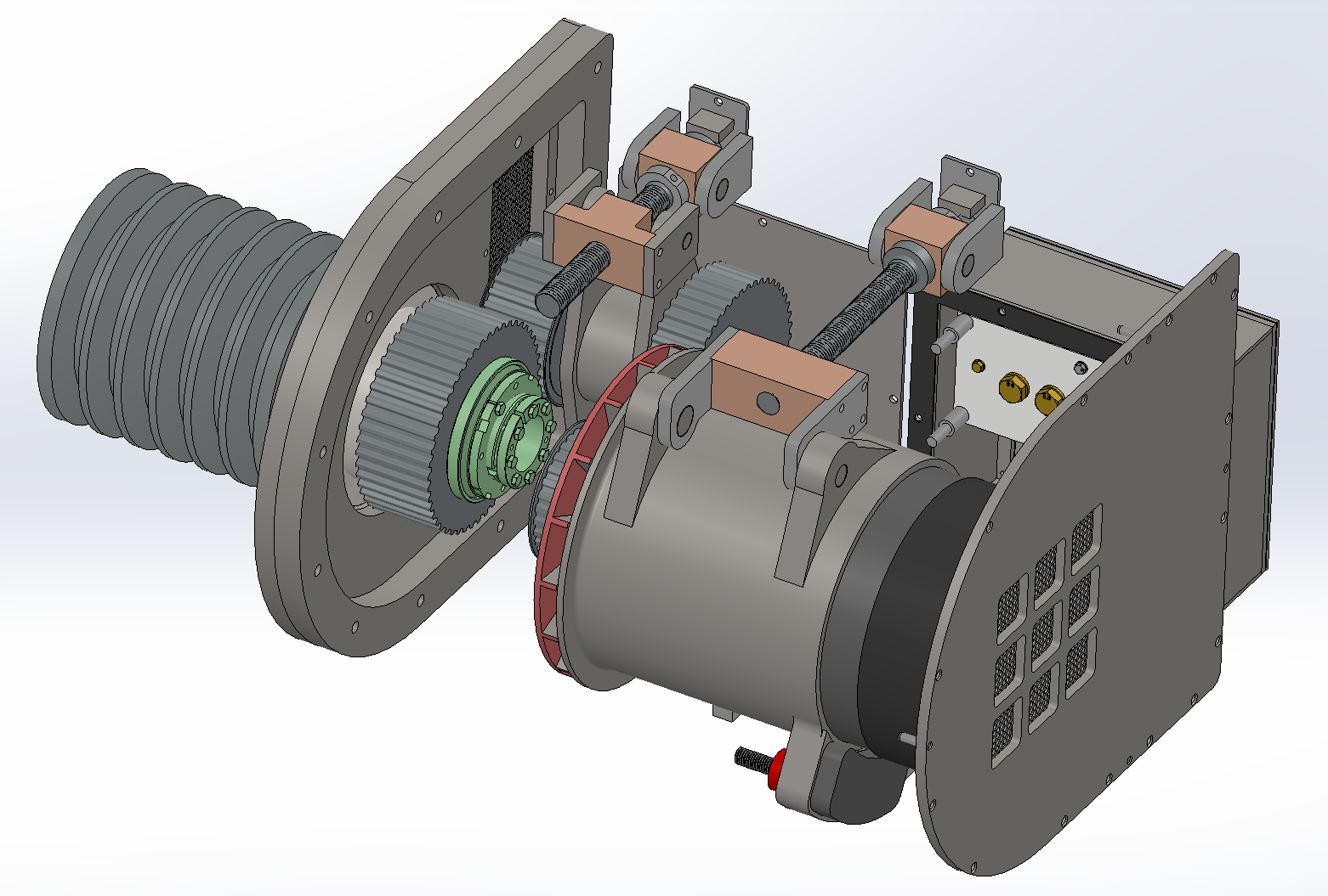 Encouragingly, the existing alternator design already allows sufficient space for a clutch to be installed. Suitable units are readily available as standard, off-the-shelf components and are widely used in industrial applications to isolate sections of a drivetrain from sudden shock loads. We have identified manufacturers able to supply a clutch to the required specification. Testing has already been carried out to establish the braking and breaking strain of the drive belts, and this data has been used to inform the clutch design. The clutch will be set to slip at a torque comfortably above that required to generate electrical power from the ADA, but well below the belt breaking strain, thereby protecting the system while maintaining normal operation.
