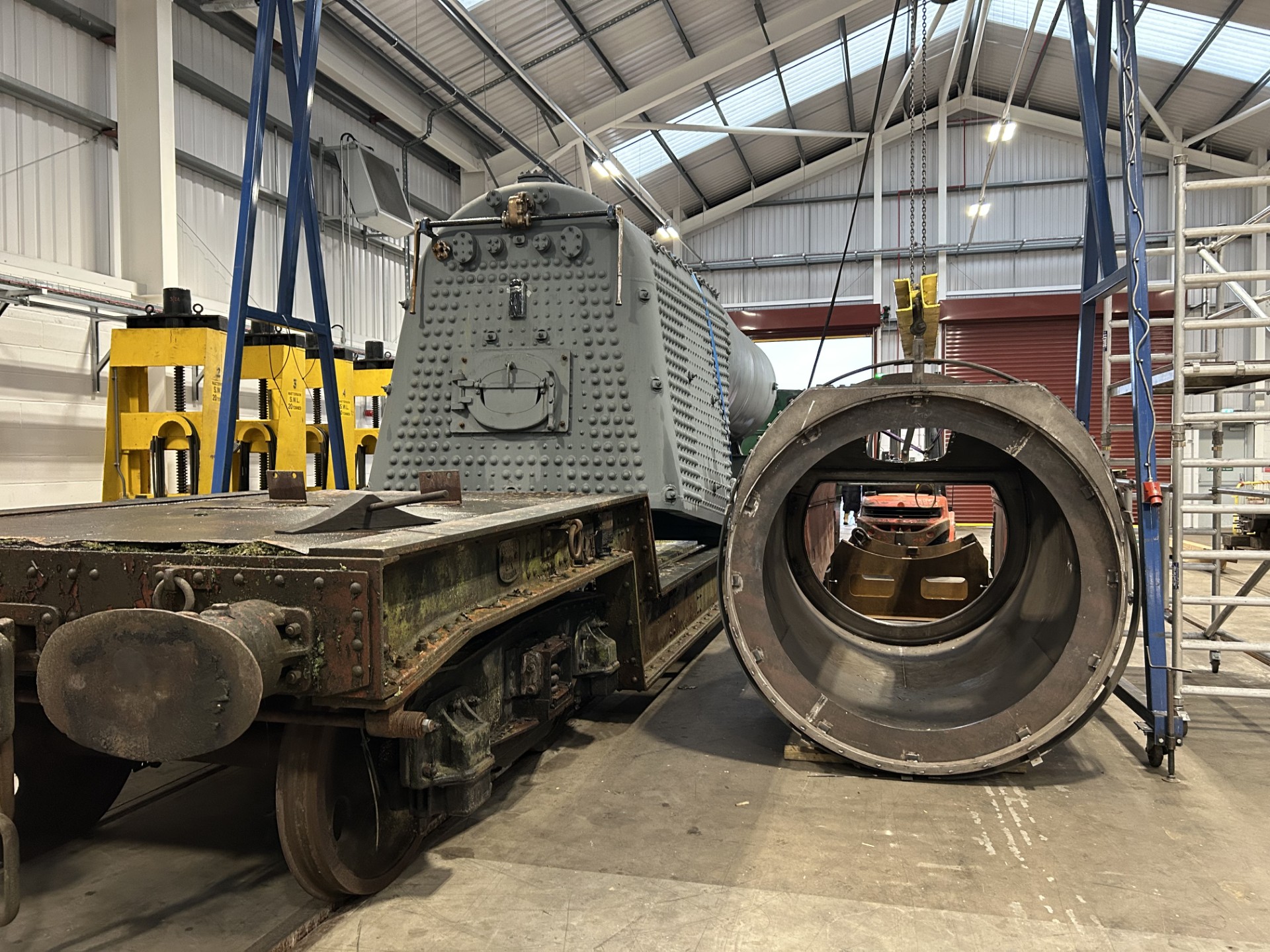 As 2024 drew to a close, the P2 project reached a major and highly significant milestone with the successful delivery of No. 2007 Prince of Wales’ boiler from DB Dampflokwerk Meiningen. Before leaving Germany, the boiler passed its hydraulic test and was awarded its CE mark — a crucial step forward in the journey towards steam.